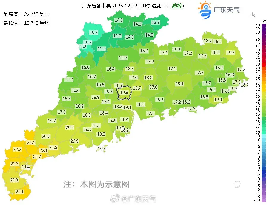 吴川与连州气温相差12℃